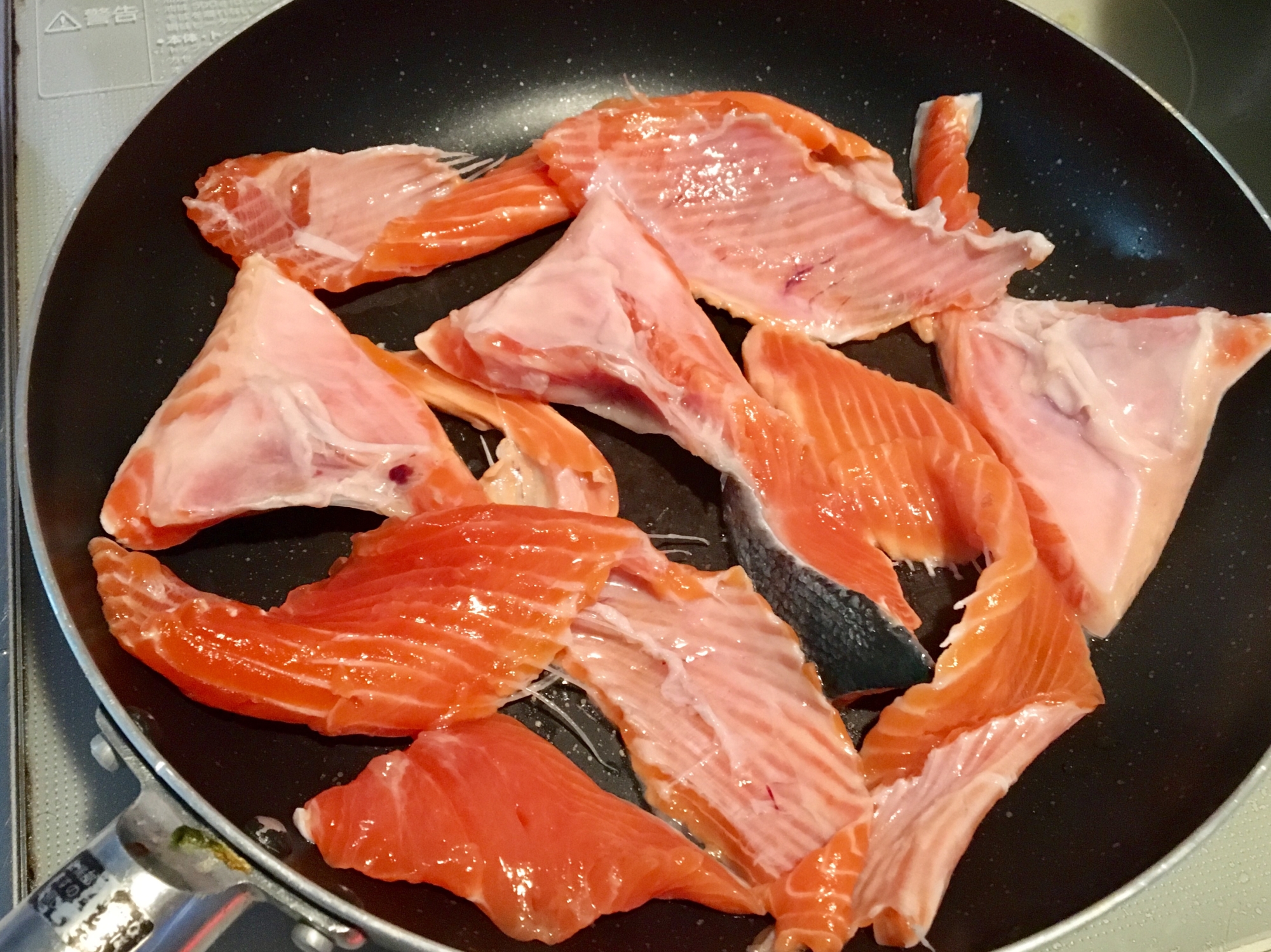 サーモンを捌いた時に出るアラを 美味しく食べる方法を紹介しています 大人の男性よ 楽しまないか